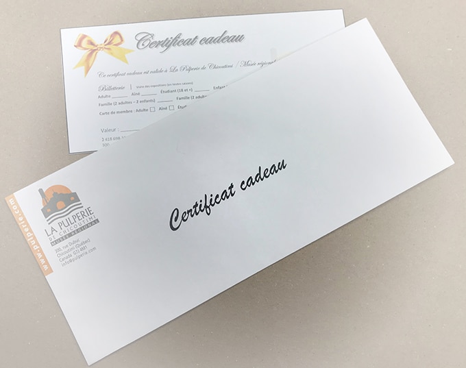 Faites plaisir à vos proches et surprenez-les avec notre certificat cadeau échangeable contre des services offerts par La Pulperie (visite des expositions, carte de membre). Voilà un cadeau parfait en toute occasion!
