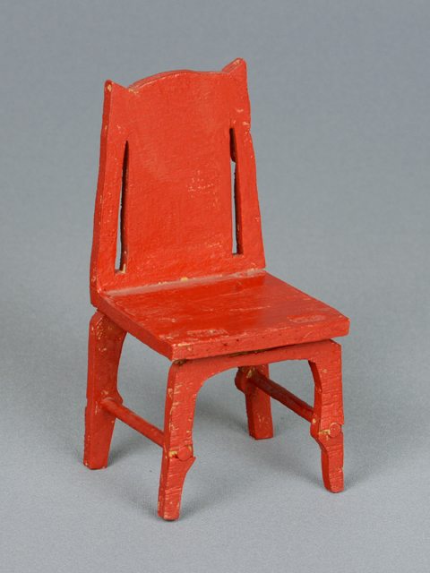 Chaise miniature en bois peint en rouge.