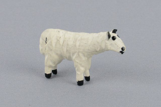 Petit mouton blanc sculpté en pin avec les sabots et oreilles noirs.