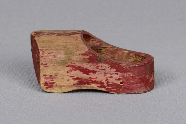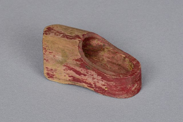 Petit sabot de bois peint rouge bourgogne.